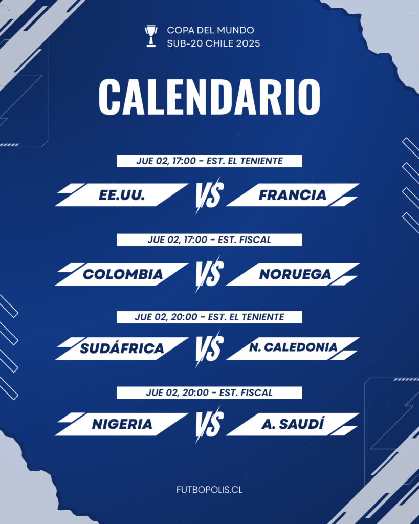 Este jueves se disputarán cuatro encuentros correspondientes a la segunda fecha de los grupos E y F, los que se desarrollan en las sedes de Rancagua, Estadio Codelco El Teniente, y en Talca, Estadio Fiscal. Como es habitual, hay dos compromisos programados a las 17:00 horas y otros dos duelos pactados para las 20:00 horas. A continuación, te dejamos la infografía.